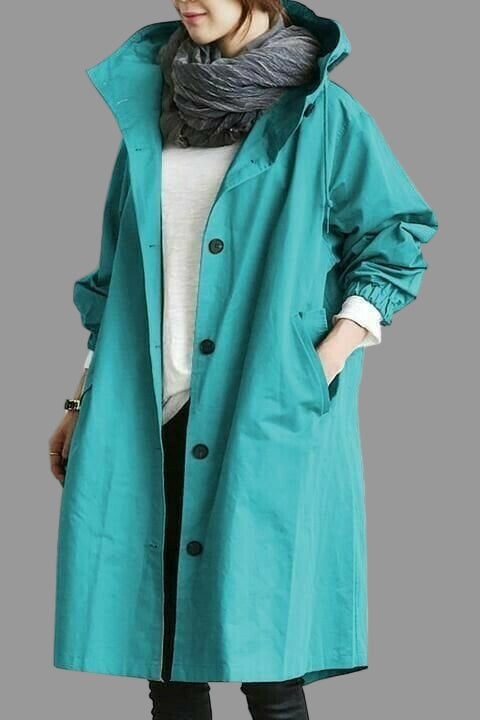 Dit windjack is veelzijdig en geschikt voor zowel casual dagen als een chique avondoutfit. Het elastische manchet maakt de mouwen eenvoudig op te rollen, terwijl de knopen en capuchon zorgen voor praktische bescherming bij wisselvallig weer.